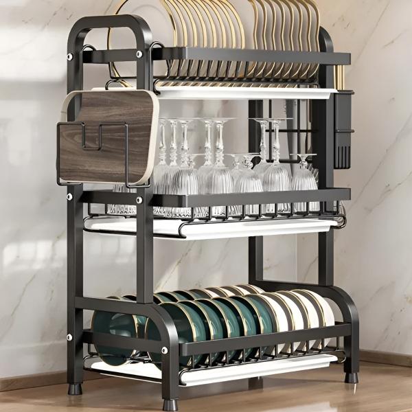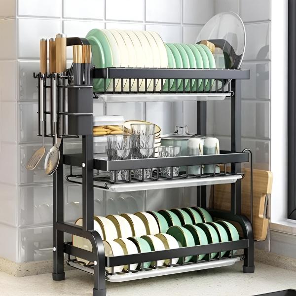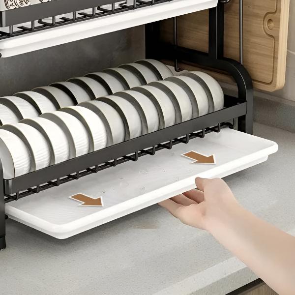 Иновативниот дизајн на повеќе нивоа овозможува сушење на чинии, чаши, чинии, тенџерија и прибор во една компактна единица.