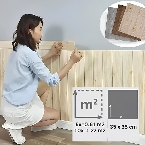 Секој пакет содржи 5 парчиња (35×35 cm) кои покриваат 0,61 m². Пред да започнете, пресметајте колку пакети ќе ви требаат врз основа на површината на ѕидот. Купете повеќе пакети за поголеми простории и уживајте во попусти на количина!