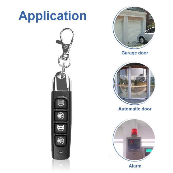 - Копирање: Земете го оригиналното далечинско во левата рака, нашиот дупликатор во десната и држете ги двете далечински управувачи што е можно поблиску; притиснете ги првите копчиња на двете далечински управувачи истовремено; за околу 2 секунди ЛЕД светлото брзо ќе трепне 2 пати; по една секунда индикаторското светло трепка постојано, тогаш пуштете ги прстите; и потоа притиснете го копчето, по успешното спарување светлото свети постојано, што значи дека кодот на првото копче од оригиналното далечинско е копиран на другото далечинско; истиот метод може да се користи по ред за второто копче, третото копче… Ако копирањето е успешно, функцијата на далечинското е иста како и на оригиналот.