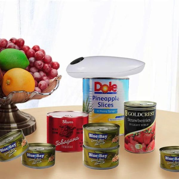 Само притиснете копче за да отворите конзерви од различни големини брзо и безбедно. Идеално за секого, вклучително и за лица со артритис или болки во рацете.