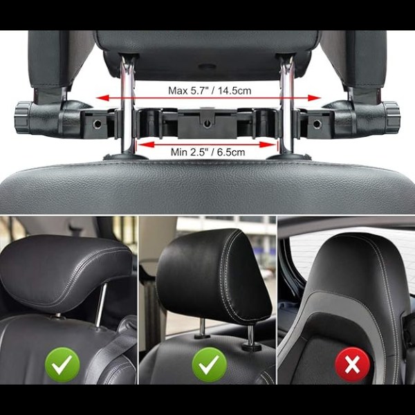 Компатибилност: Погодно за автомобилски седишта со одделни наслонки за глава и со растојание помеѓу облегалките од 7-16 cm. Не е погодно за фиксирани наслонки за глава.