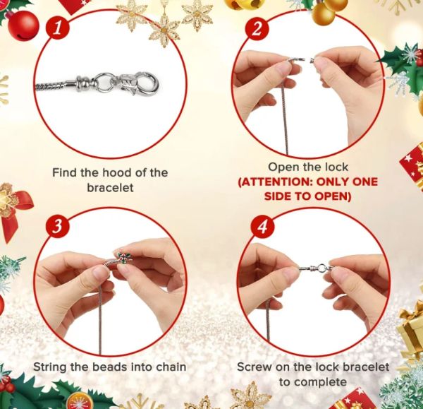 Одлична опција за девојчиња кои сакаат да креираат свои накит. Оваа наруквица е забавна занаетчиска активност за време на празниците, која им овозможува на девојчињата да мешаат и спојуваат перли и приврзоци за да персонализираат своја уникатна наруквица за Божиќ.