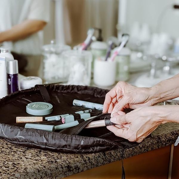 Со GLAMSY можете лесно да ги чувате предметите. Само повлечете ја врвката за да ја склопите торбата во компактен формат погоден за патување. Таа е совршена за ранец или багаж и ги чува алатките за убавина организирани и заштитени од можни оштетувања. Благодарение на нејзината огромна капацитет за складирање и практичност, оваа магична торбичка е незаменлив додаток за сокривање на сите есенцијални производи за нега на кожата.