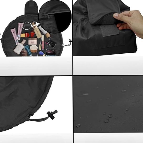 Организирајте се со стил со GLAMSY! Нашата иновативна торбичка со врвка се шири за да овозможи лесен пристап до сите вашите убавински производи. Збогум на проблемите со шминкањето и добредојде на компактна и без напорна организација!